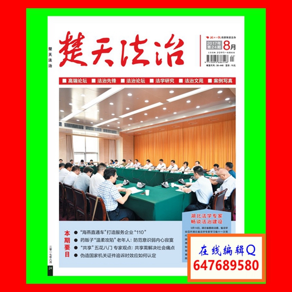 《楚天法治》杂志融权威性、理论性、指导性、现实性、探讨性和实践性于一体,以导向正、形式新、内容活、服务优为编辑方针;以关注社情民生服务百姓,写实情,忠实履行新闻媒体作为党和政府的喉舌、民众代言人的职责为办刊宗旨,为法治工作提供信息服务。本刊为《中国核心期刊(遴选)数据库》全文收录期刊,被转载率及学术价值高,刊发文章符合评定中、高级职称要求,深受广大专家、学者及作者、读者的好评。欢迎海内外广大学者、法治工作者及科研教职人员等各界人士赐稿,并提出宝贵意见,以便提高我们的办刊质量。