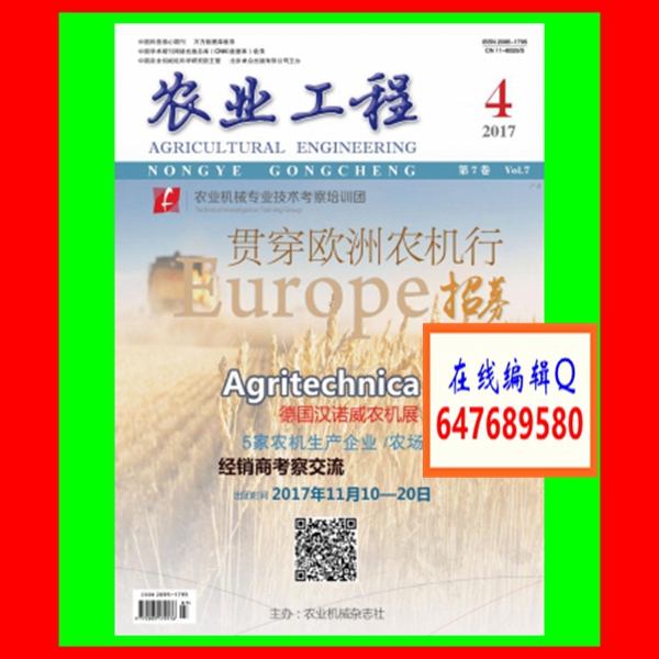 2、《农业工程》关键词要求35个,应能反映论文所属的专业领域、研究对象、研究内容和方法等。尽量使用《机械工程叙词表》、《汉语主题词表》中的规范词,也可使用专业规范术语。关键词规范程度直接影响论文的被引用频率,请作者仔细推敲。英文关键词应与中文关键词一致,并与英文摘要用词一致。作者简介在文稿首页末著录以下项目:第一作者和通讯作者姓名、职称,主要研究方向,E-mail地址,联系电话。